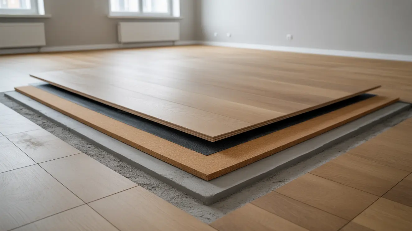 På betong fungerar ofta ett högdensitetsunderlag 1,5–2 mm med låg dynamisk styvhet. Lägg ångspärr vid behov och tejpa skarvar tätt. Kontrollera planhet noga; spackla gropar och slipa toppar, eftersom ojämnheter ger svikt, knarr och onödigt ljud.